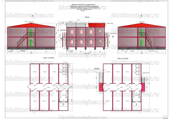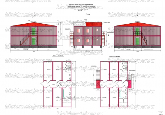 Двухэтажное общежитие из 36 БК, на 100 человек